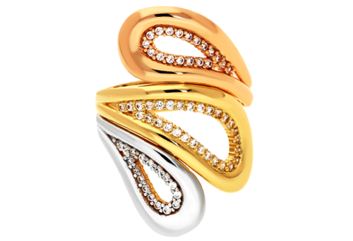 Zlatý extravagantný dámsky prsteň s krištáľmi