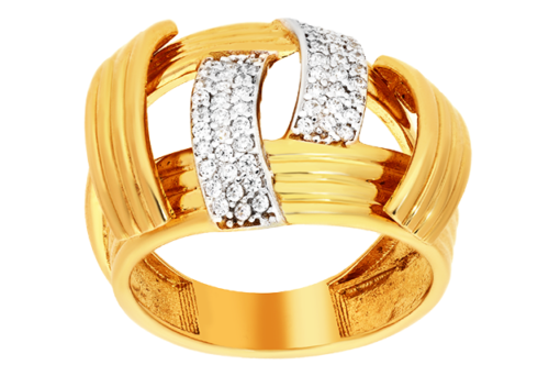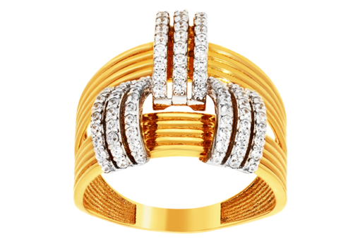 Zlatý nevšedný dámsky prsteň s krištáľmi