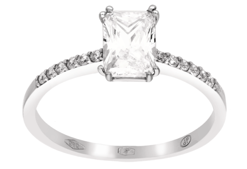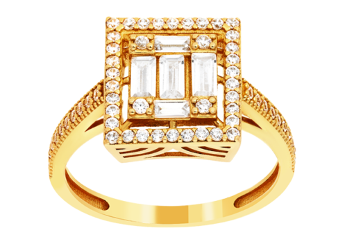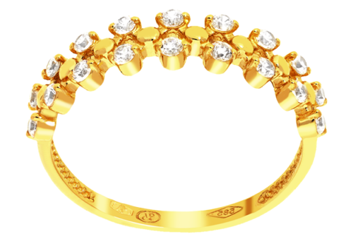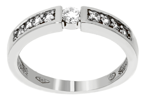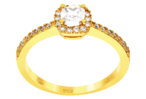Zlatý zásnubný prsteň s bielymi krištáľmi