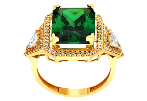 Zlatý unikátny dámsky prsteň so zeleným krištáľom