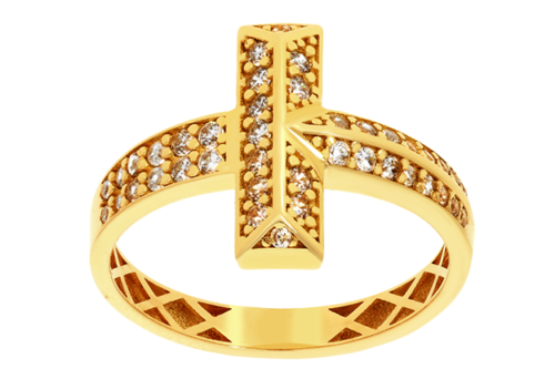 Zlatý jemný dámsky prsteň s dvoma krištáľmi